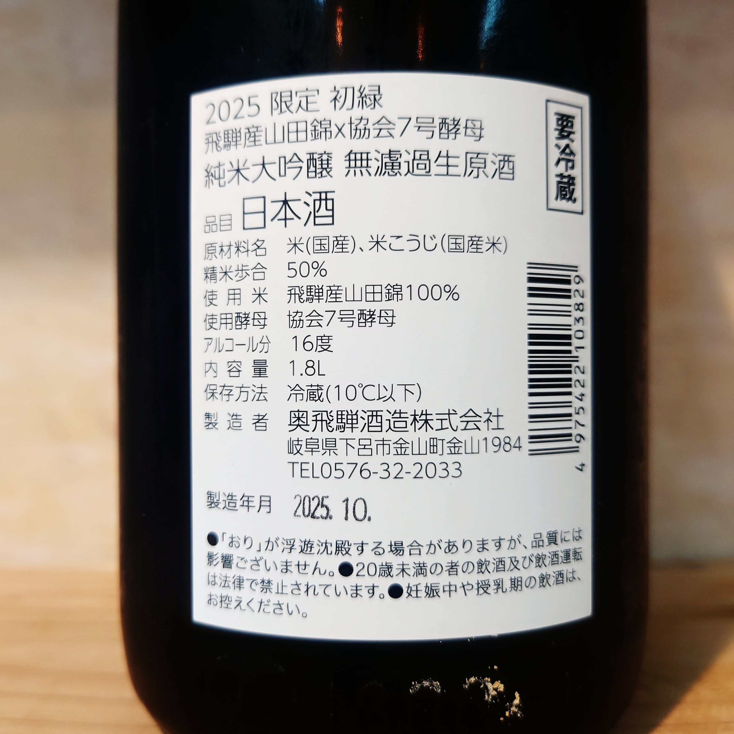 今年の初緑、Limitedシリーズ第三段は地元の飛騨山田錦を協会7号酵母で仕込んだ大吟醸。