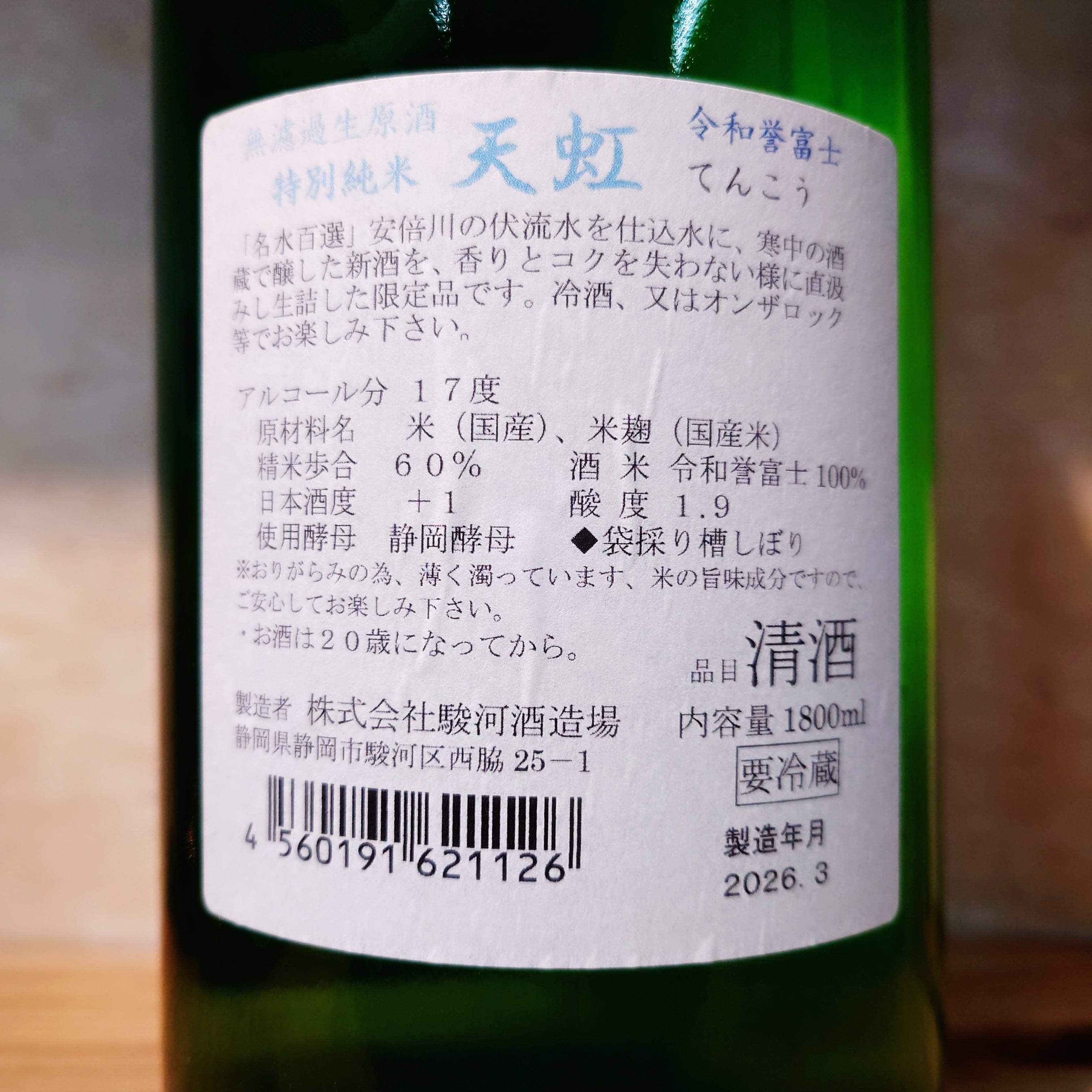 天虹 特別純米 令和誉富士 うすにごり生原酒 1.8L