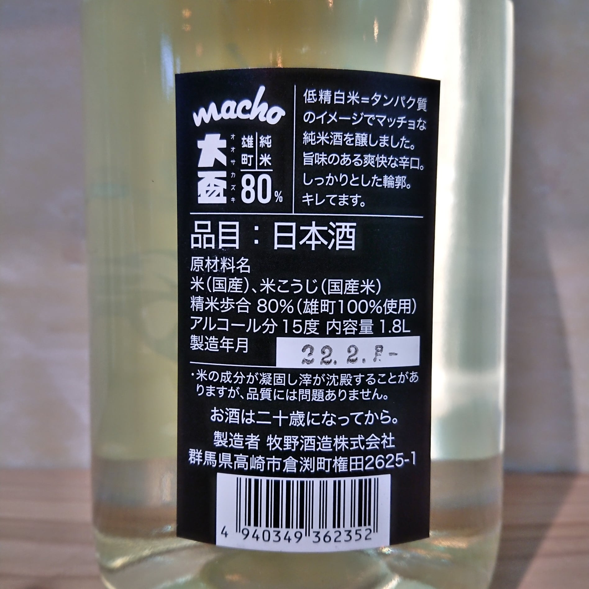 大盃 MACHO 雄町80 生 1.8L